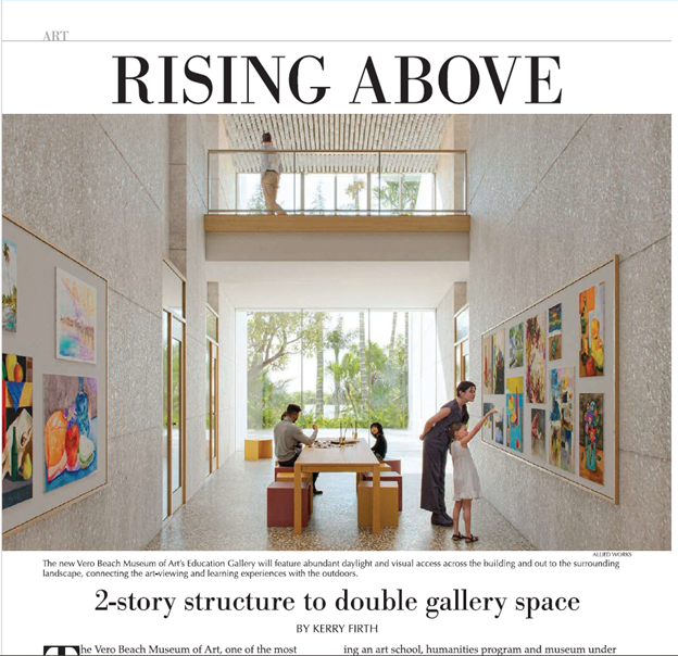 With its gardens, galleries, terraces, and courtyards, the new Vero Beach Museum of Art is much more than a museum, an art school, and community spaces—it is a resilient, dynamic, and welcoming arts center for the Vero Beach community and for visitors from throughout the region, state, and beyond.